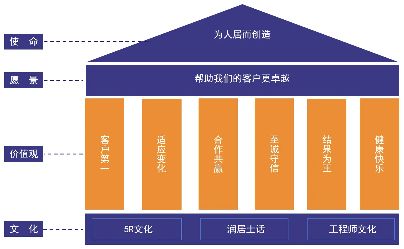 愿景诠释:我们本着对外成就客户、对内成就员工的原则,本着利他之心,帮助客户更卓越、帮助员工更优秀,坚持为客户创造长期价值,方能实现润居梦!